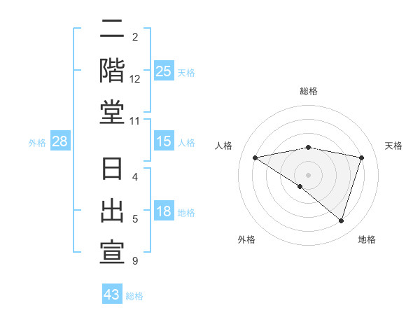 二階堂 日出宣さんを姓名の画数から五運を鑑定