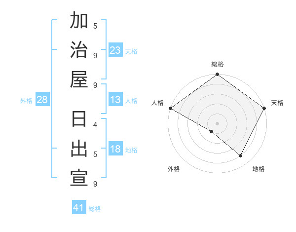 加治屋 日出宣さんを姓名の画数から五運を鑑定