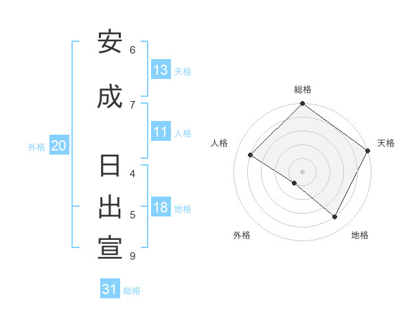 安成 日出宣さんを姓名の画数から五運を鑑定