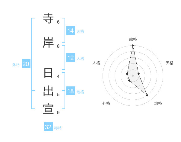寺岸 日出宣さんを姓名の画数から五運を鑑定