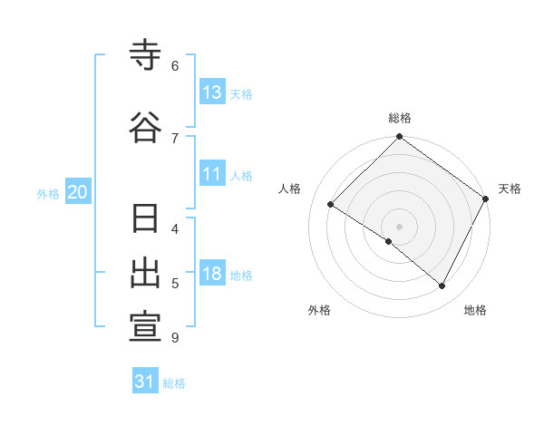 寺谷 日出宣さんの総格は31画の5点!
