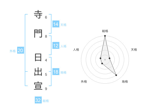 寺門 日出宣さんを姓名の画数から五運を鑑定
