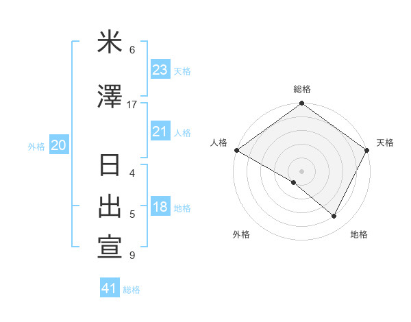 米澤 日出宣さんを姓名の画数から五運を鑑定