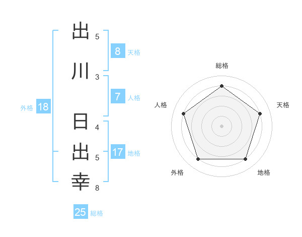 出川 日出幸さんを姓名の画数から五運を鑑定
