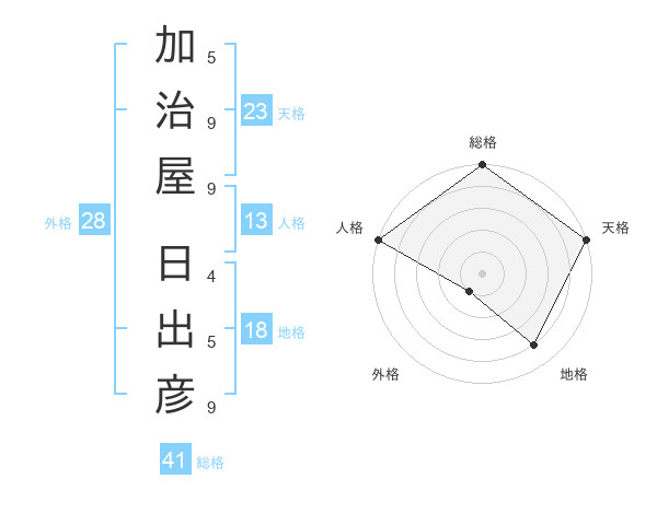 加治屋 日出彦さんを姓名の画数から五運を鑑定