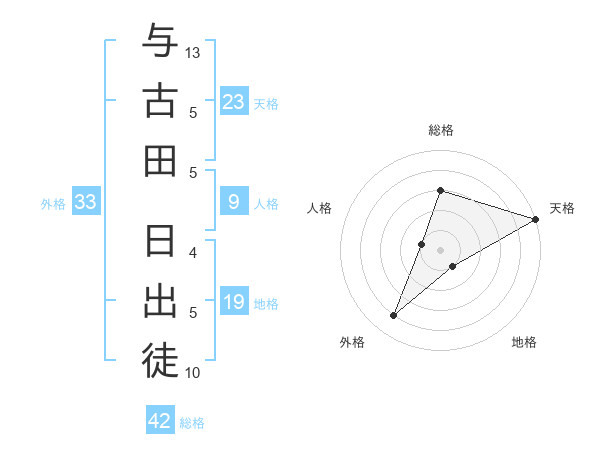 与古田 日出徒さんを姓名の画数から五運を鑑定