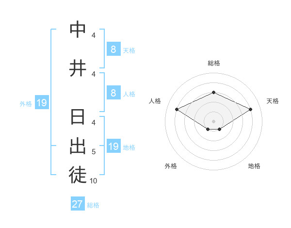 中井 日出徒さんを姓名の画数から五運を鑑定