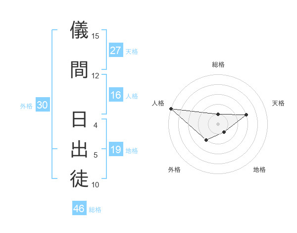儀間 日出徒さんを姓名の画数から五運を鑑定