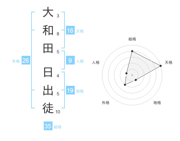 大和田 日出徒さんを姓名の画数から五運を鑑定
