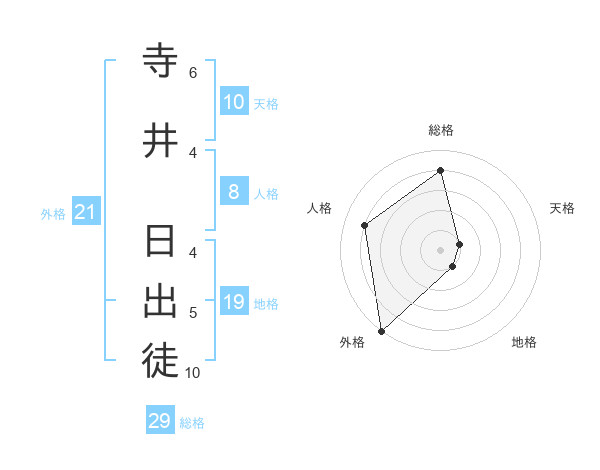 寺井 日出徒さんの総格は29画の4点!