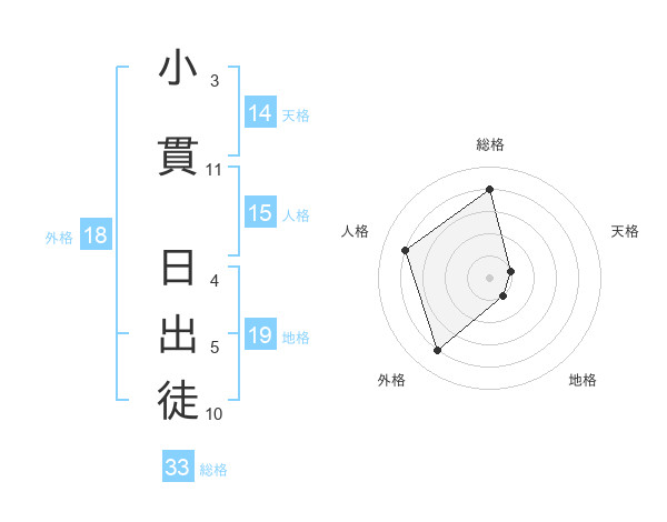 小貫 日出徒さんを姓名の画数から五運を鑑定