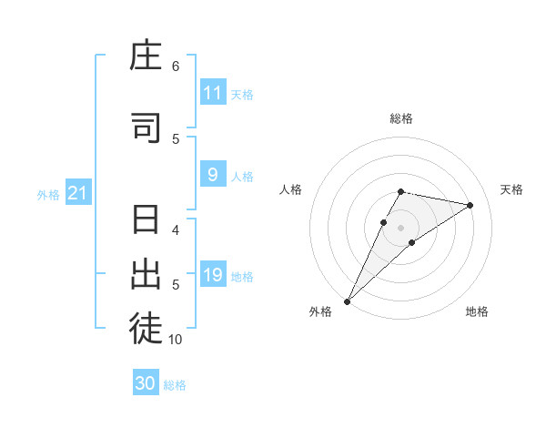 庄司 日出徒さんを姓名の画数から五運を鑑定