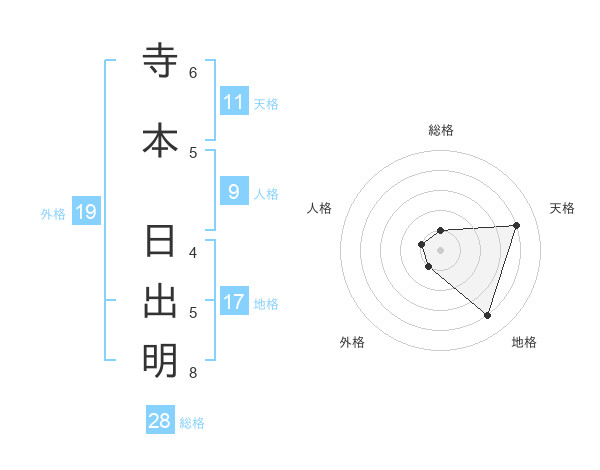 寺本 日出明さんの天格は11画の4点!