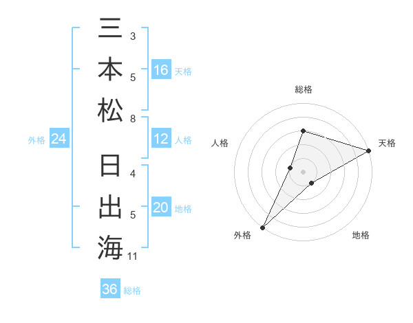 三本松 日出海さんを姓名の画数から五運を鑑定