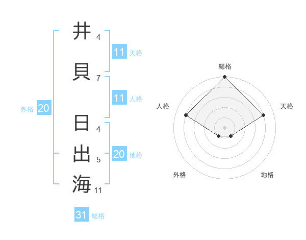 井貝 日出海さんを姓名の画数から五運を鑑定