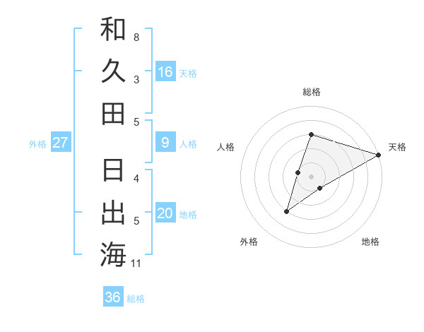 和久田 日出海さんの天格は16画の5点!