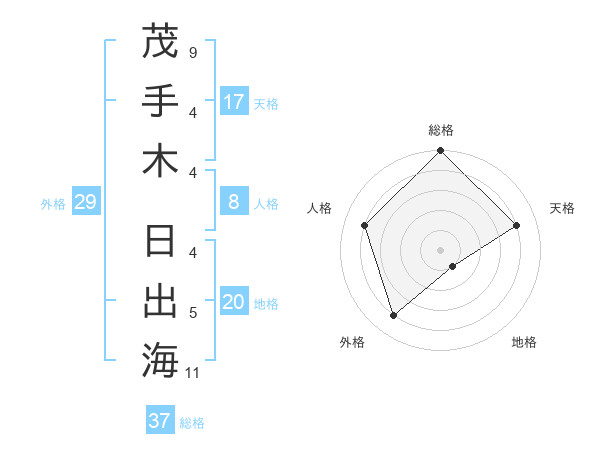 茂手木 日出海さんを姓名の画数から五運を鑑定