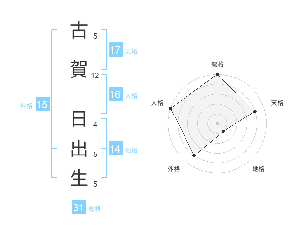 古賀 日出生さんの天格は17画の4点!