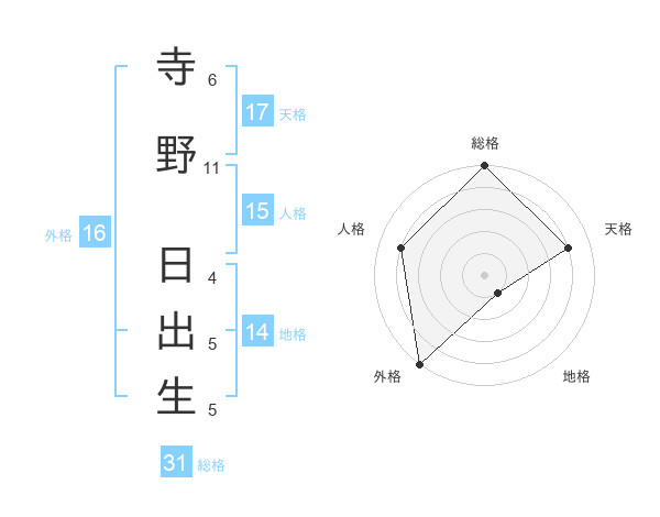 寺野 日出生さんの総格は31画の5点!