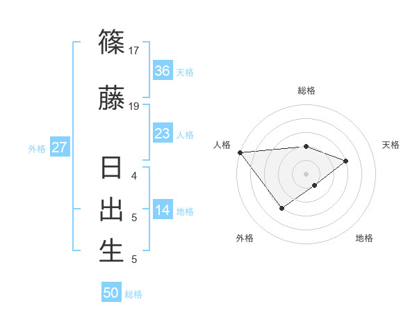 篠藤 日出生さんの総格は50画の2点!