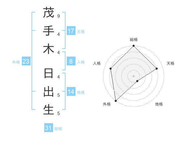 茂手木 日出生さんを姓名の画数から五運を鑑定