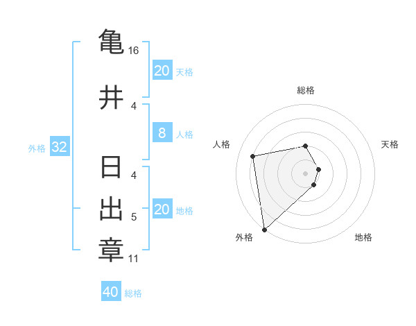 亀井 日出章さんを姓名の画数から五運を鑑定