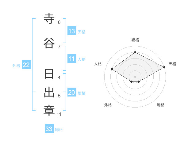 寺谷 日出章さんの総格は33画の4点!