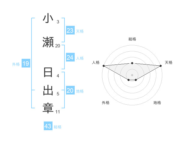 小瀬 日出章さんの総格は43画の2点!
