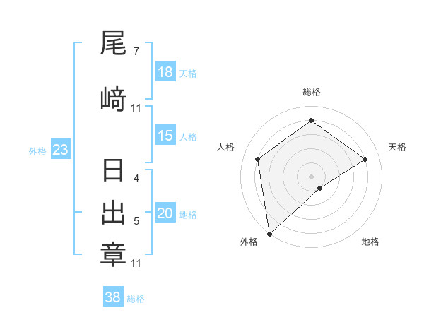 尾﨑 日出章さんの総格は38画の4点!