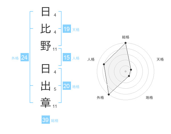 日比野 日出章さんを姓名の画数から五運を鑑定
