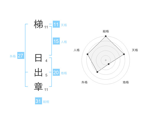 梯 日出章さんの総格は31画の5点!