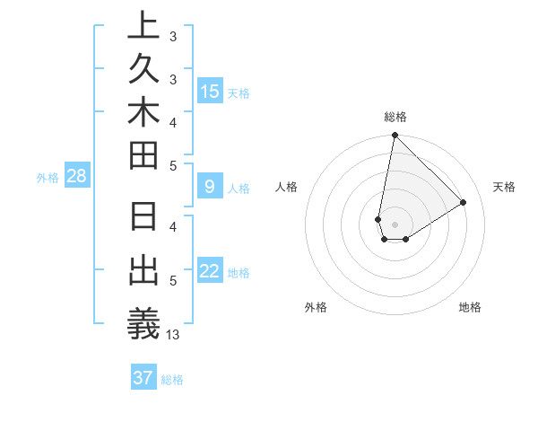 上久木田 日出義さんを姓名の画数から五運を鑑定