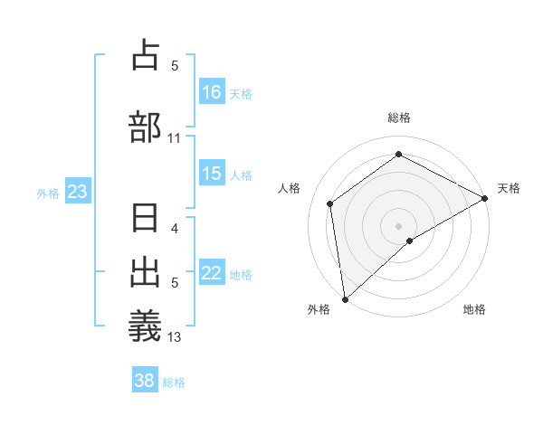 占部 日出義さんの天格は16画の5点!