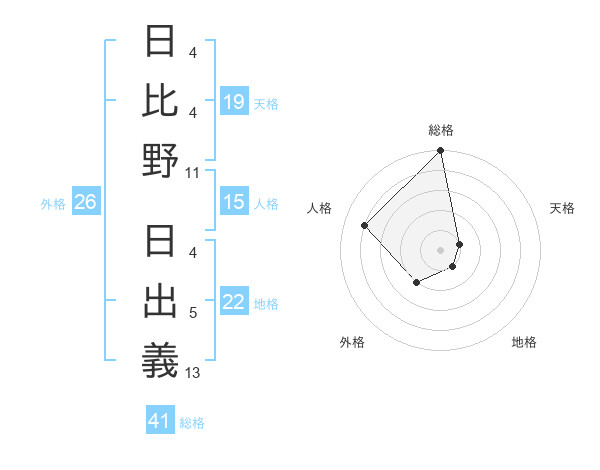 日比野 日出義さんを姓名の画数から五運を鑑定