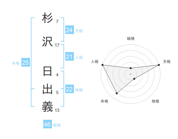 杉沢 日出義さんを姓名の画数から五運を鑑定