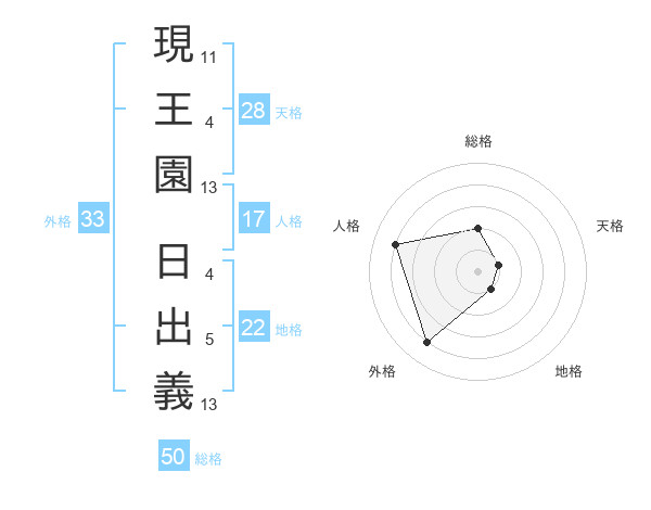現王園 日出義さんの外格は33画の4点!