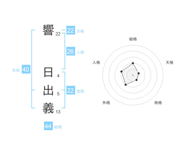響 日出義さんの総格は44画の2点!