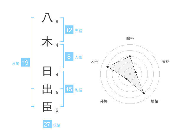 八木 日出臣さんの総格は27画の3点!