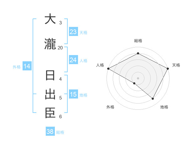 大瀧 日出臣さんを姓名の画数から五運を鑑定