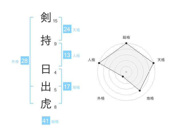 剣持 日出虎さんを姓名の画数から五運を鑑定