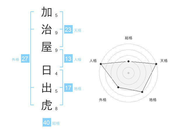 加治屋 日出虎さんを姓名の画数から五運を鑑定