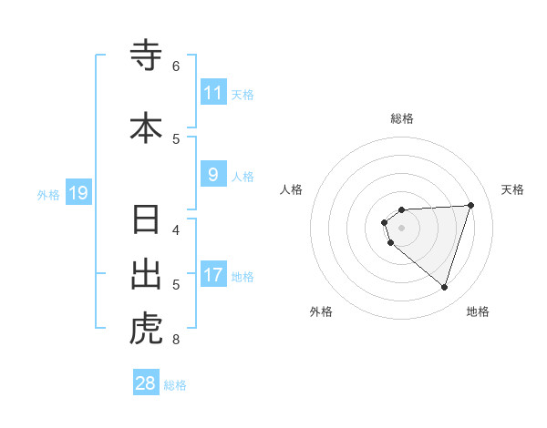 寺本 日出虎さんの総格は28画の1点!