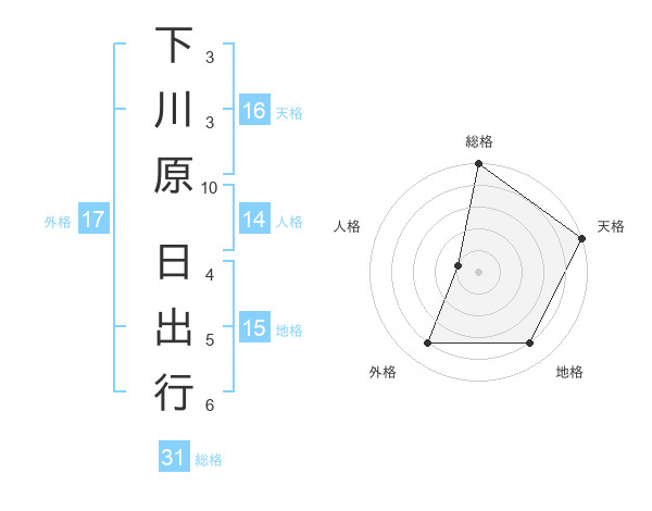 下川原 日出行さんを姓名の画数から五運を鑑定