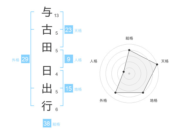与古田 日出行さんを姓名の画数から五運を鑑定
