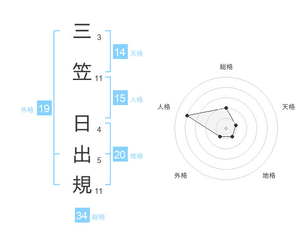 三笠 日出規さんを姓名の画数から五運を鑑定