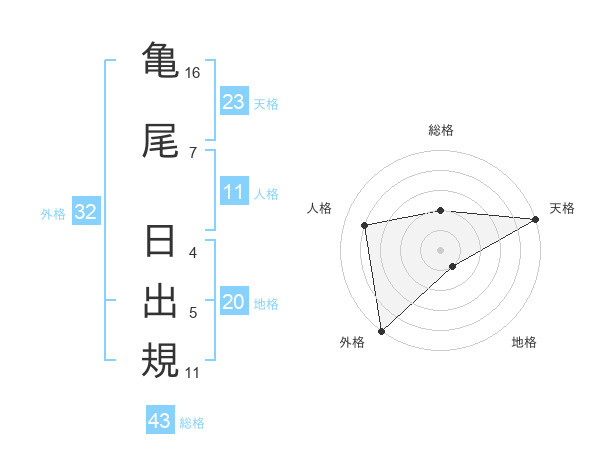 亀尾 日出規さんを姓名の画数から五運を鑑定