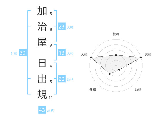加治屋 日出規さんを姓名の画数から五運を鑑定
