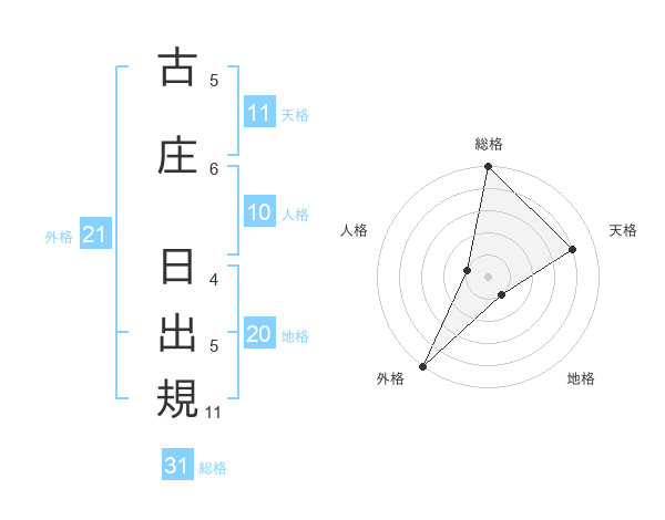 古庄 日出規さんを姓名の画数から五運を鑑定