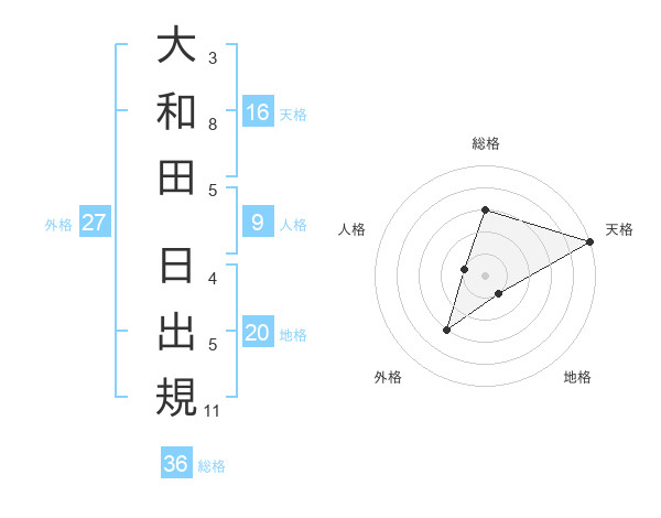 大和田 日出規さんを姓名の画数から五運を鑑定