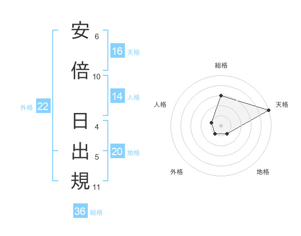 安倍 日出規さんを姓名の画数から五運を鑑定